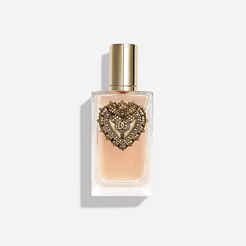 Devotion by Dolce & Gabbana is a luminous gourmand floral fragrance that celebrates the joy of giving in to pleasure. Created by perfumers Olivier Cresp and Nathalie Lorson and launched in 2023, Devotion captures the essence of pure happiness – a scent that feels like a warm embrace, a sweet surrender, a devotion to life’s sweetest moments. The fragrance opens with a vibrant, candied burst of Candied Lemon from Italy – a bright, zesty, and sweet top note that immediately uplifts the spirit. At the heart, a delicate bouquet of Orange Blossom unfolds, adding a soft, solar, and white floral elegance that balances the sweetness with feminine grace. The base is a rich, velvety, and addictive blend of Madagascar Vanilla and Virginian Cedarwood, creating a warm, creamy, and long-lasting trail that lingers on the skin like a sweet memory. Encased in a majestic bottle with a golden Sacred Heart emblem – a symbol of love, passion, and devotion – the design reflects the fragrance‘s soul. The glass bottle is topped with a pink cap, and the outer packaging is made from FSC®-certified paper. Perfect for cooler weather, romantic evenings, or any moment you want to feel joyful and irresistible, Devotion is a celebration of la dolce vita. Wear it as a sweet act of devotion to yourself.