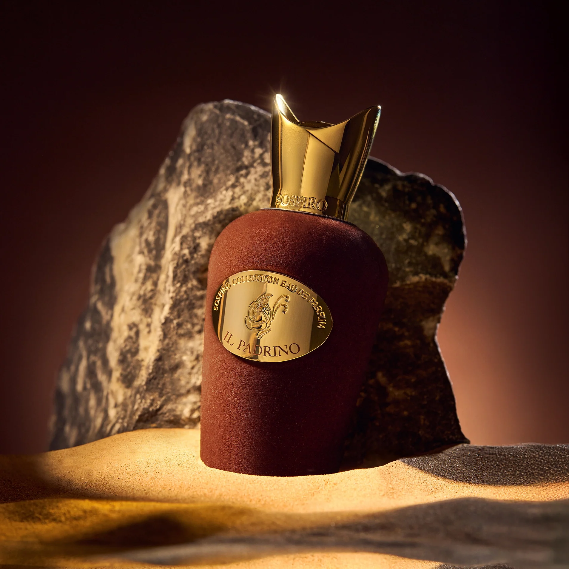 Il Padrino by Sospiro is a woody oriental fragrance that embodies the essence of quiet, undisputed power. Launched in 2025 and created by perfumers Nathalie Templer and Salah Al Zarooni, this intense, opulent Eau de Parfum pays homage to silent strength and undeniable elegance, designed for those who define their own destiny. The olfactory journey opens with a provocative and addictive accord of Dark Rum and Amaretto, a warm, slightly sweet, and intoxicating blend that commands immediate attention. This liqueur-like introduction is enhanced by the juicy richness of Blackcurrant and the sparkling brightness of Bergamot, adding vibrancy and depth. As the fragrance develops, the heart reveals a sophisticated, woody warmth. Golden Amber and Sensual Patchouli merge with the creamy elegance of Sandalwood, creating a magnetic and structured core. The base is a warm, resinous embrace of Labdanum, Siam Benzoin, and Vanilla, leaving a long-lasting, velvety trail that exudes authority and timeless luxury. Perfect for evening wear and cooler seasons, Il Padrino offers exceptional longevity. It is a powerful, charismatic signature for the modern individual who commands respect without uttering a word.